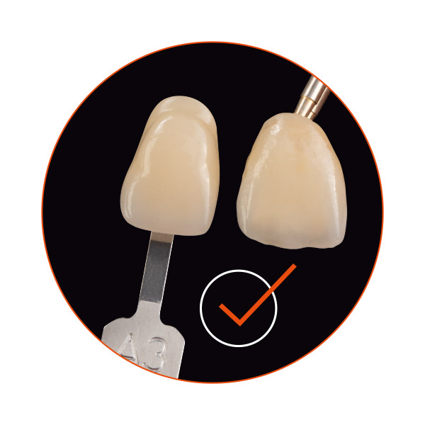 Zahnfarben verlässlich reproduzieren dank Pressrohlingen mit sehr guter Farbtreue sowie ideal abgestimmten Systemkomponenten.
